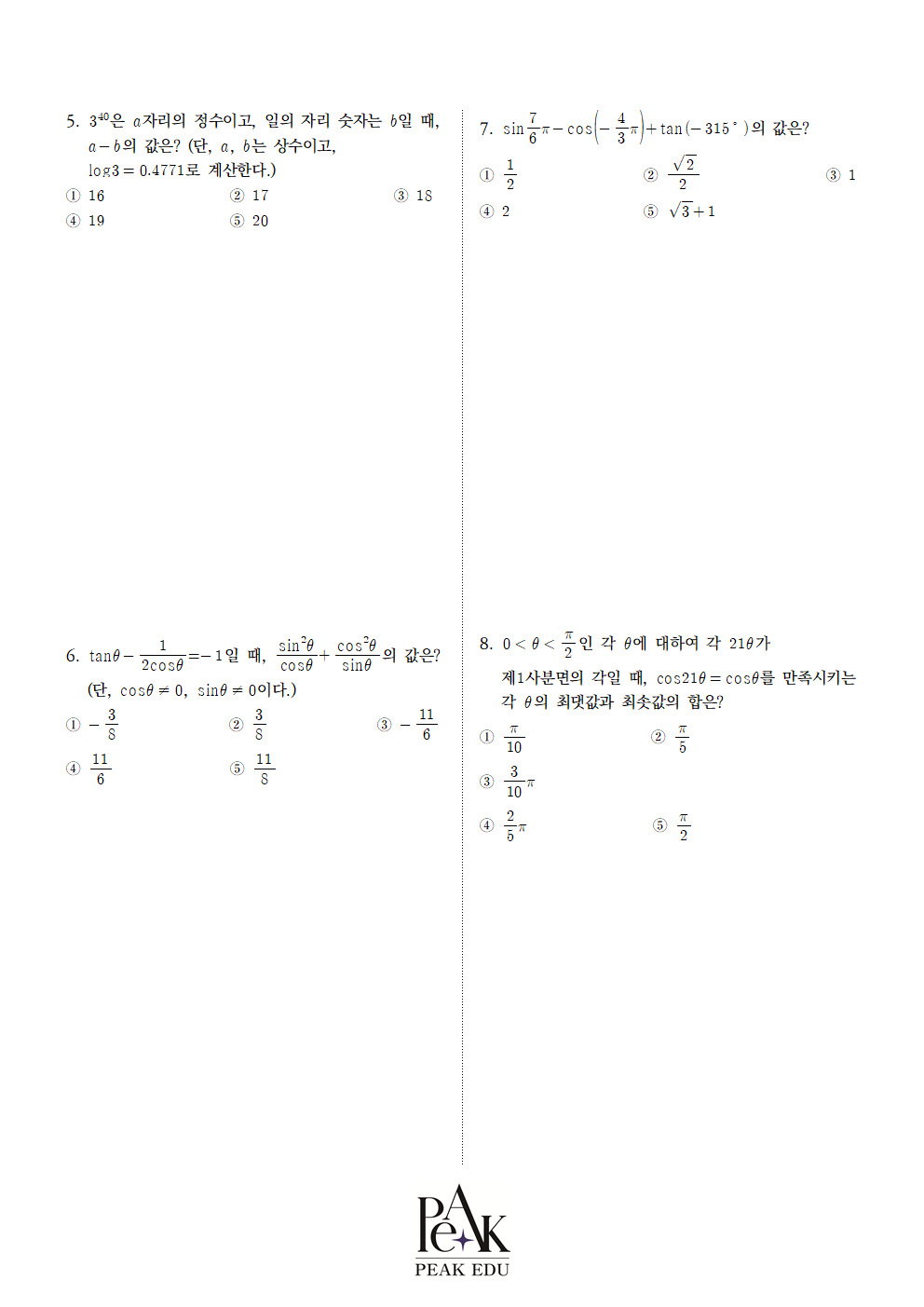 문항수 : 20문제 (선택형 18, 서답형 2)