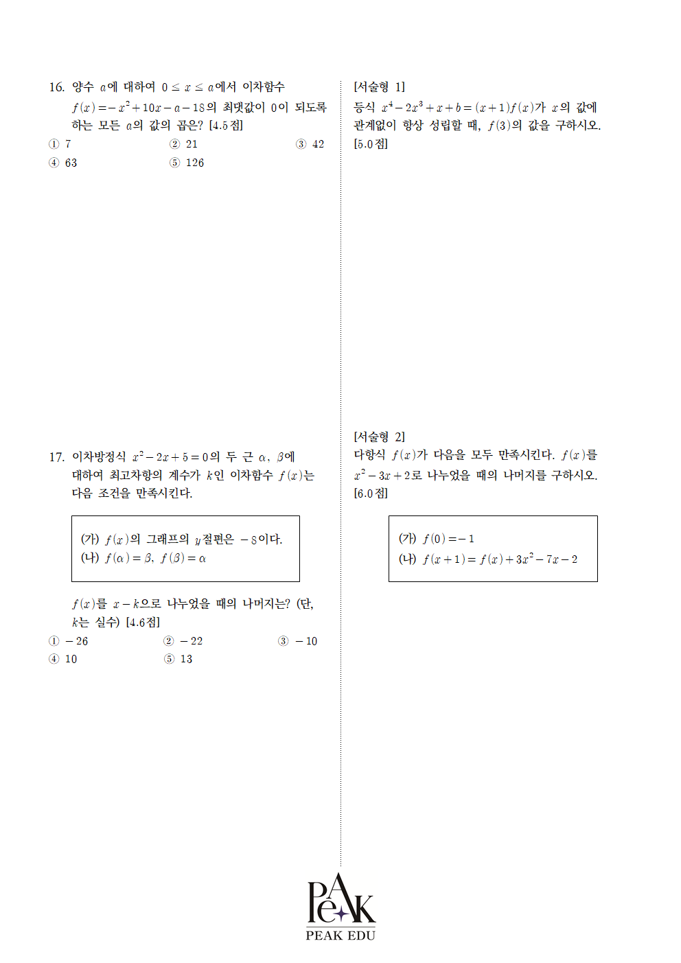 문항수 : 22문제 (선택형 17, 서답형 5)