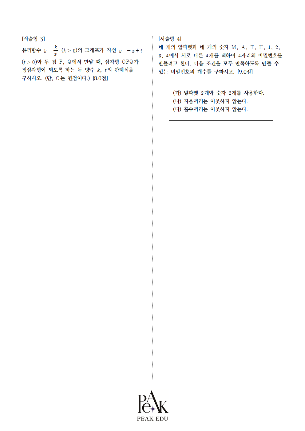 범위 : 유리함수와 무리함수 ~ 순열과 조합