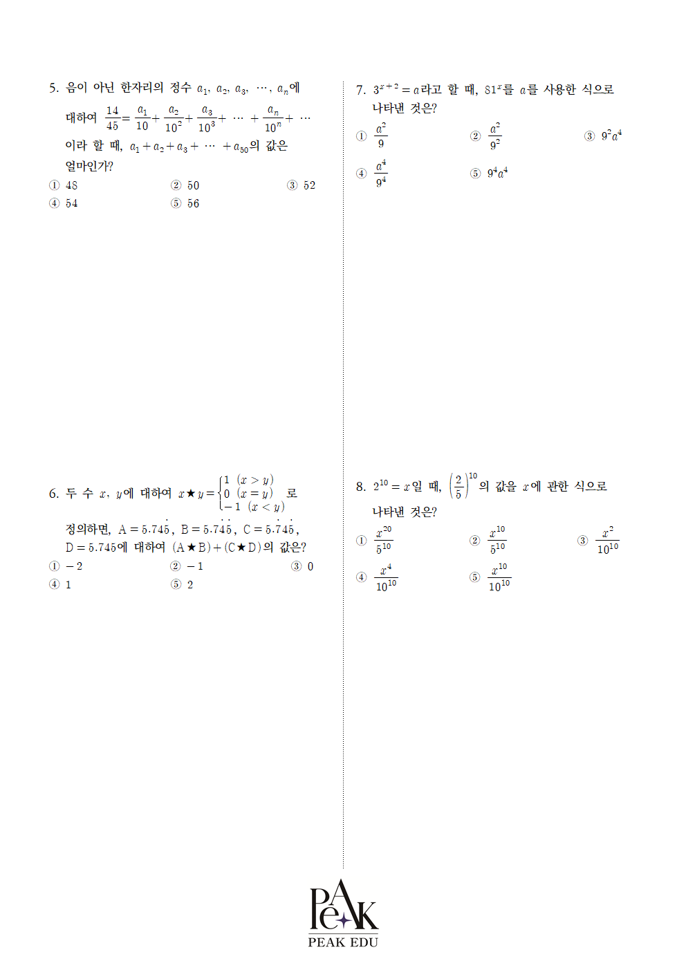| 중2 1학기 중간고사 대비 수학 기출 모의고사 (1) |