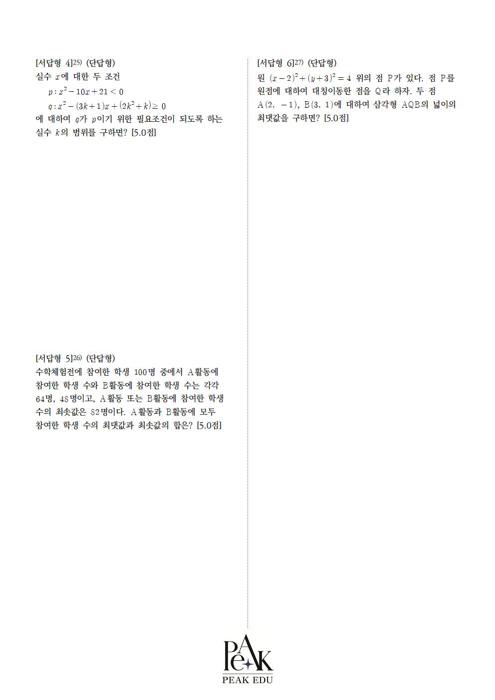 문항수 : 27문제 (선택형 21, 서답형 6)